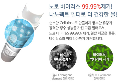 노로 바이러스 99.99% 제거, 일반세균은 물론, 바이러스와 박테리아까지 제거합니다.