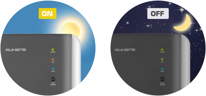 아침과 같이 제품 주위가 다시 밝아지면 자동으로 감지하여 ECO 기능을 정지하고 정상적으로 제품을 동작 시킵니다.